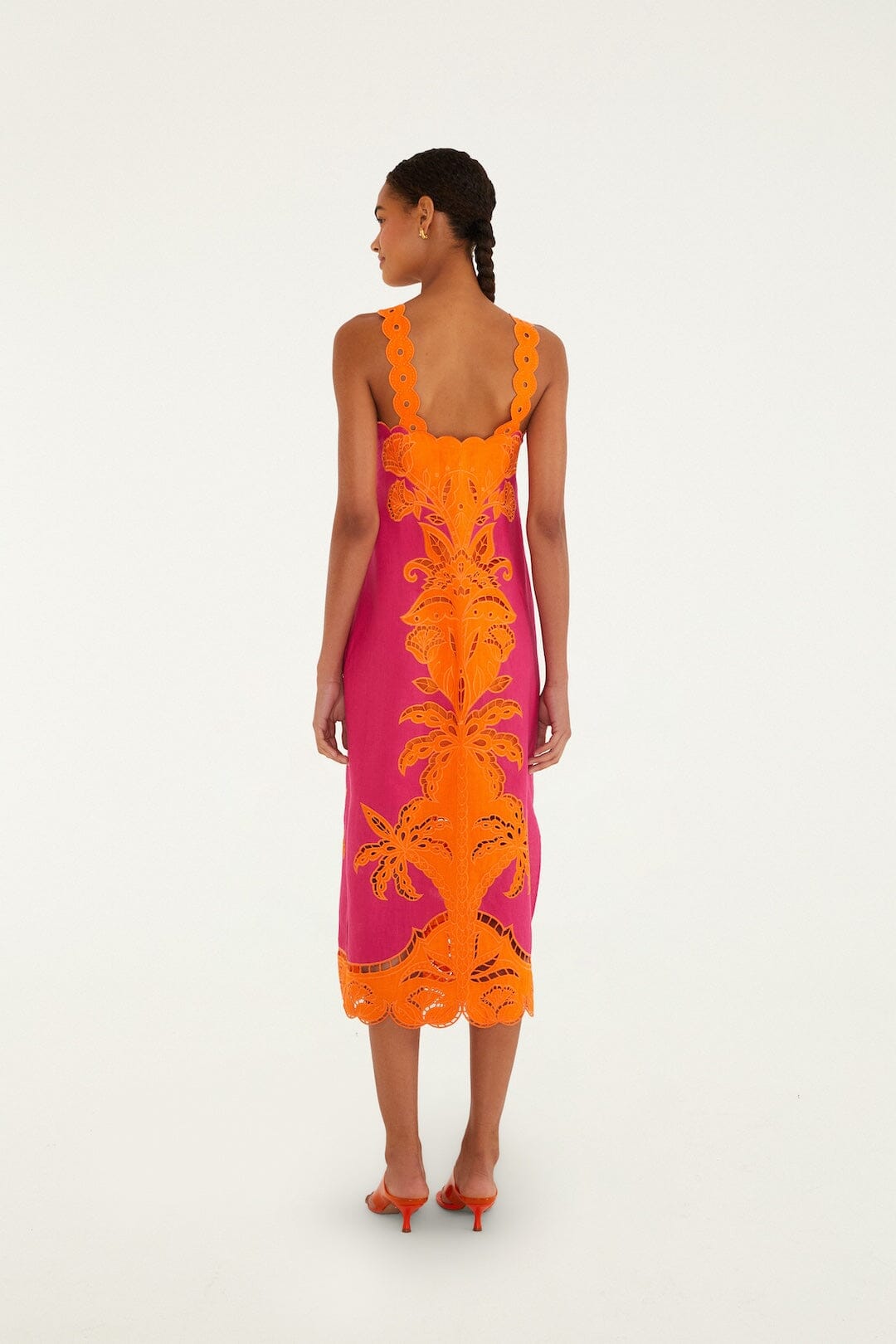 Embrace effortless elegance with the Pinke Cutwork Euroflax™ Premium Linen Midi Dress by FARM Rio. Crafted from breathable, responsibly sourced Euroflax™ linen, this dress features a flattering square neckline and delicate cutwork embroidery that adds artisanal charm. Its flowing midi silhouette moves gracefully, while the soft pink hue evokes warmth and playfulness. Perfect for sunny days, it celebrates sustainable luxury with a light, airy feel and timeless Brazilian spirit.