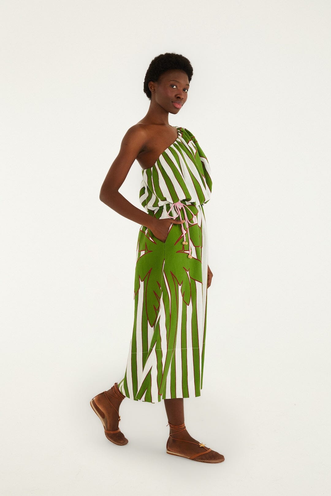 Embrace effortless elegance with the Off-White One-Shoulder Midi Dress by FARM Rio. Crafted from sustainable Euroflax and Lenzing Ecovero fabrics, this dress boasts a soft, breathable feel that moves gracefully with you. Its striking one-shoulder silhouette brings a playful asymmetry, while the off-white hue creates a fresh canvas for warm, sun-kissed moments. Perfect for those who cherish style with a conscious heart and a spirited soul.