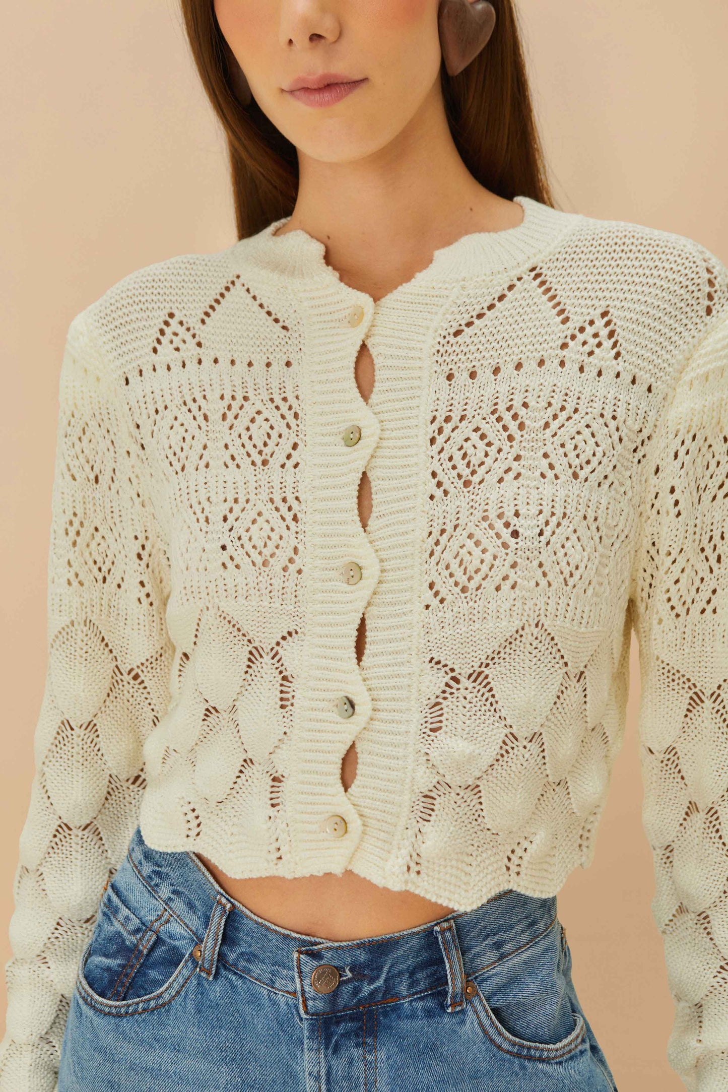 Wrap yourself in the delightful embrace of the Mix Lace Stitch Cardigan by FARM Rio. Featuring a sophisticated high neckline, this cardigan blends playful color palettes with intricate lace stitch patterns, creating a tapestry of textures. The relaxed silhouette is designed for effortless style, while the artisanal detailing evokes the warm spirit of Brazilian craftsmanship. Perfect for layering or wearing solo, this piece effortlessly combines elegance and comfort, inviting a touch of tropical flair into your wardrobe.