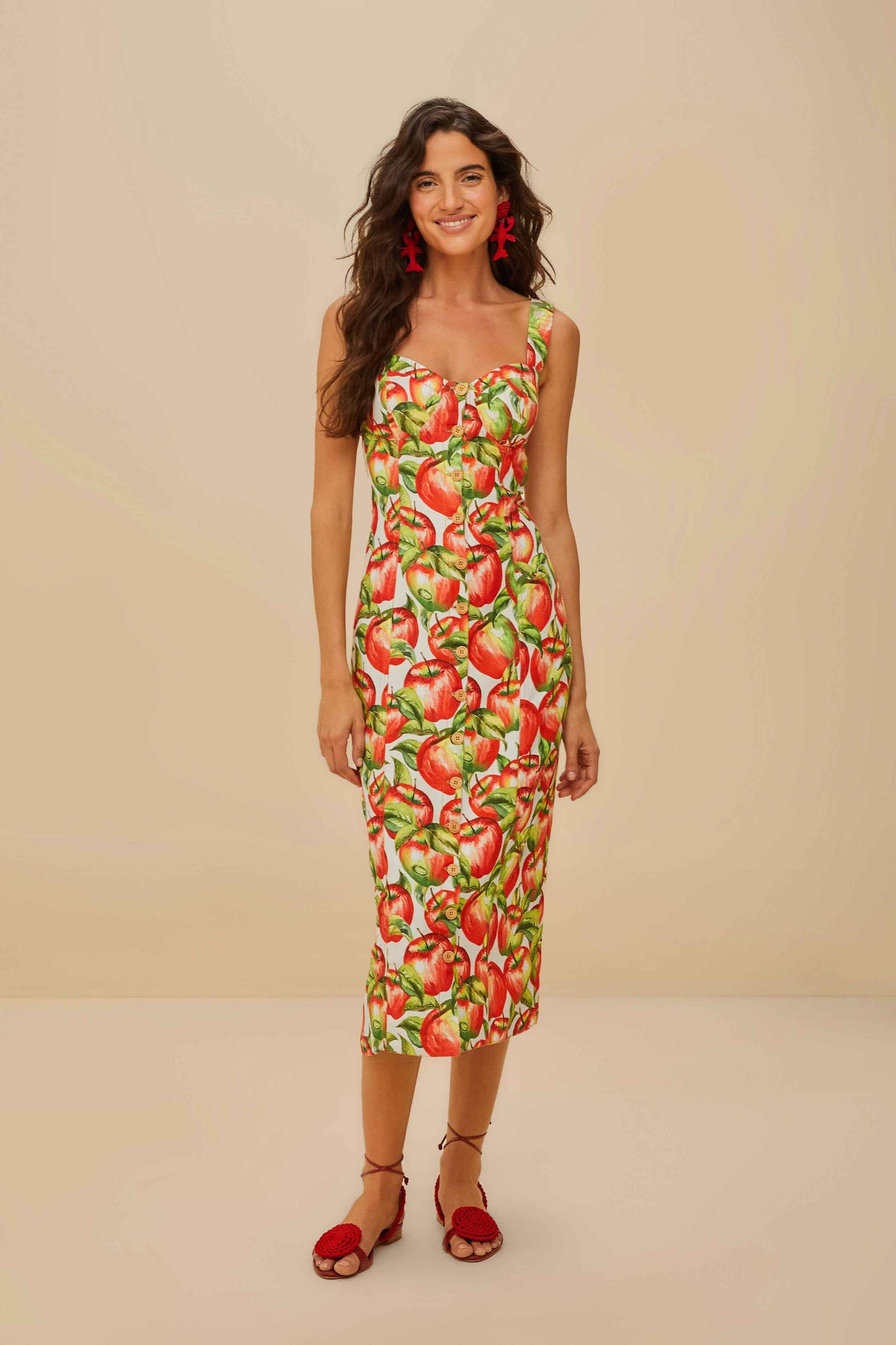 Dive into a playful garden of vibrant apples with the Off-White Apple LENZING™ ECOVERO™ Euroflax™ Midi Dress. The sweetheart neckline softly frames your silhouette, while the charming apple print bursts with color and joy. Crafted from responsible materials, the midi length offers a graceful flow, making it the perfect blend of elegance and whimsy. Let this dress transport you to sunnier days filled with warmth and cheer.