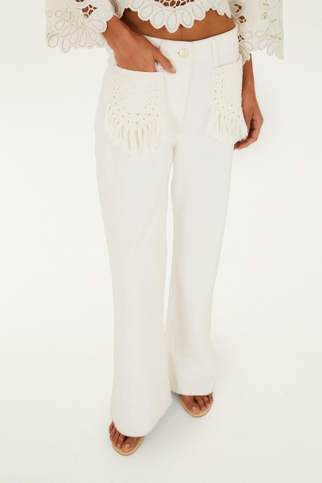 Embrace effortless charm with the Twill Fringe Pocket Pants from FARM Rio. Crafted in soft twill fabric, these pants showcase playful fringe details along the pockets, adding a touch of unexpected texture. Their relaxed silhouette drapes gracefully, balancing comfort with a spirited edge. The warm, earthy tones invite a sunny, carefree vibe, perfect for those who cherish vibrant, joyful style infused with a hint of whimsy.