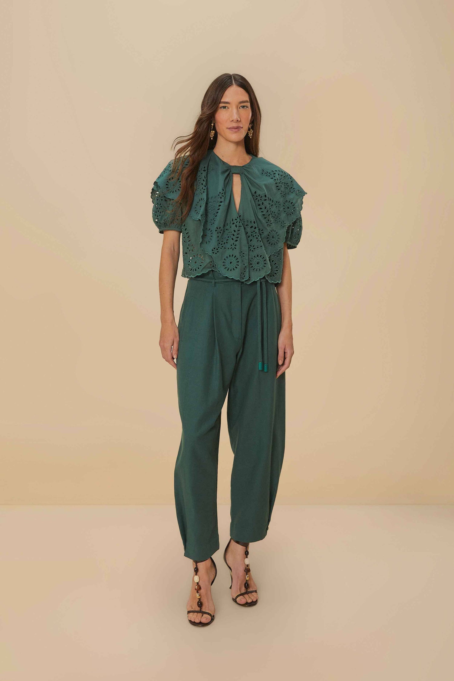 dark green topstitched clochard pants