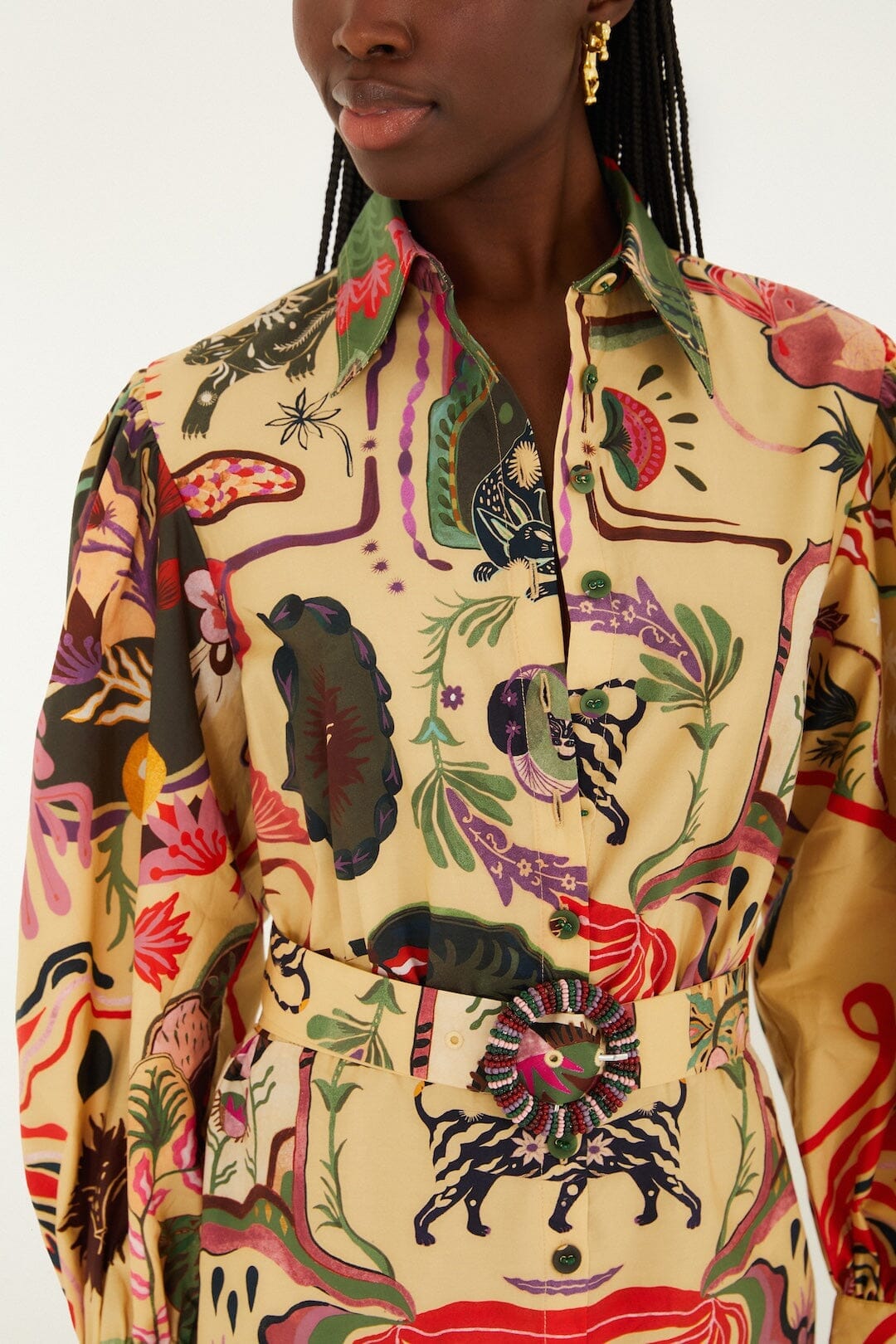 beige artsy surreal land beaded belt organic cotton mini dress