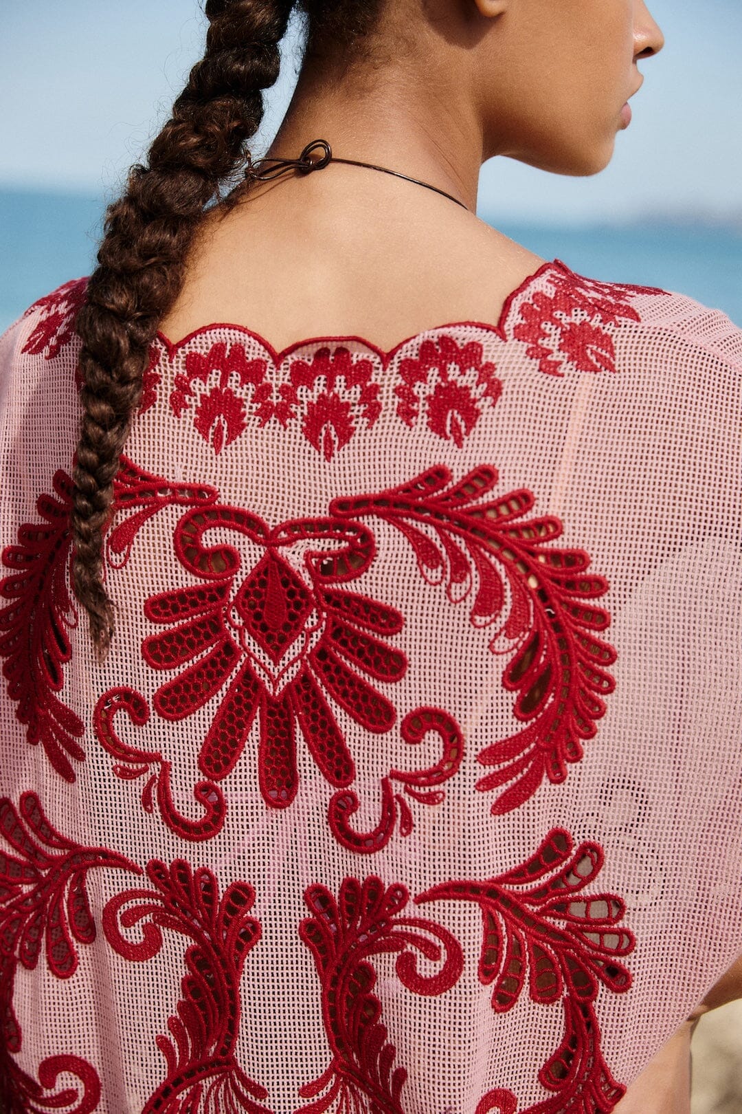 Embrace effortless charm with the Light Pink Arabesc Dress from FARM Rio. Bathed in soft, sun-kissed pink, this swimwear piece dances with delicate arabesque patterns that evoke tropical breeze and vibrant energy. Its flowy silhouette gently drapes the body, creating a graceful movement that feels like a warm embrace. Lightweight and breathable, this dress embodies playful elegance perfect for beachside days or sunset strolls by the water.