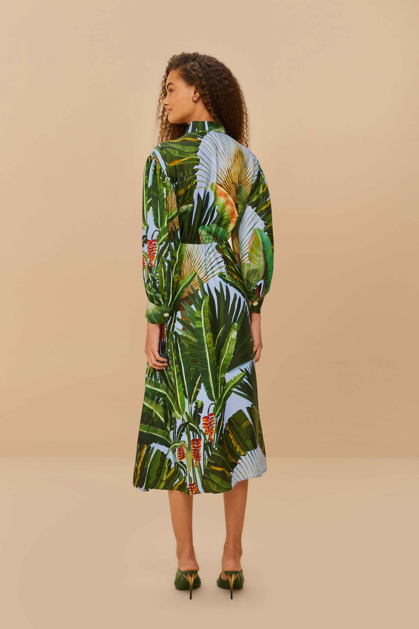 Step into a vibrant world with the Blue Amazonia Forest LENZING™ ECOVERO™ Viscose Midi Dress. This piece captivates with its lush tropical prints and lively greens, perfectly paired with a classic collar neckline. Crafted from responsible materials, it offers a thoughtful blend of style and environmental care. The fluid silhouette and long sleeves create a harmonious balance between playful elegance and relaxed charm. LENZING™ ECOVERO™: the eco-responsible fibers generate up to 50% lower emissions and water impact compared to generic viscose.