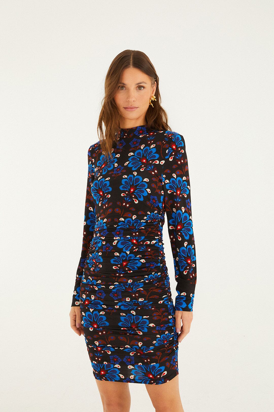 Embrace effortless charm with the Black Latina Scarf Jersey Mini Dress by FARM Rio. This playful piece features a high neckline that gracefully frames the collar, while its soft jersey fabric drapes beautifully over the silhouette. The dress is adorned with vibrant scarf-inspired patterns, blending bold colors and intricate motifs that celebrate Brazilian spirit. Its mini length and fluid fit invite movement, making it a radiant choice for sunlit days and warm evenings alike.