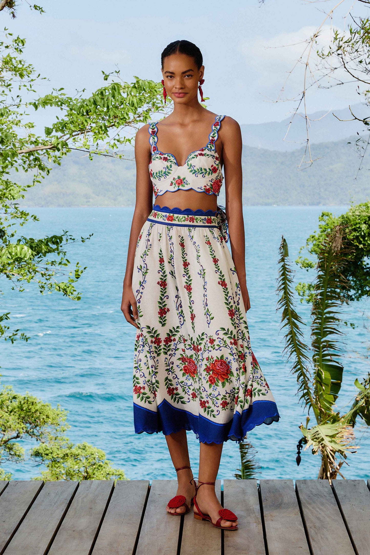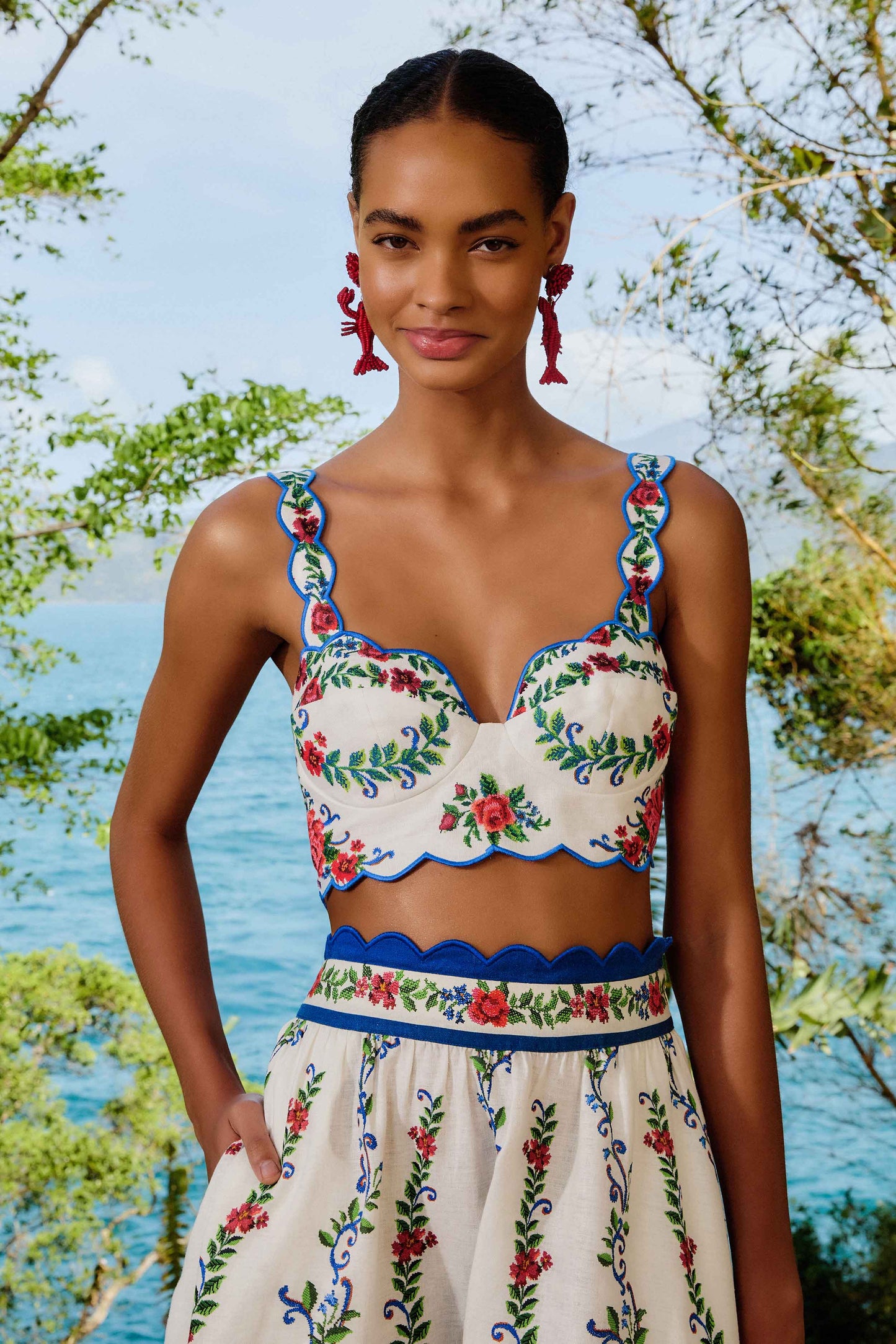Embrace the essence of summer with the Off-White Flower Tapestry Euroflax™ Premium Linen Top. This top features a flattering sweetheart neckline and vibrant floral embroidery, exuding playful charm. Crafted from responsible materials, its scalloped trim and delicate straps offer a touch of elegance, while the open back adds a hint of allure. Perfect for sunlit adventures or leisurely strolls, this top embodies warmth and whimsical beauty.