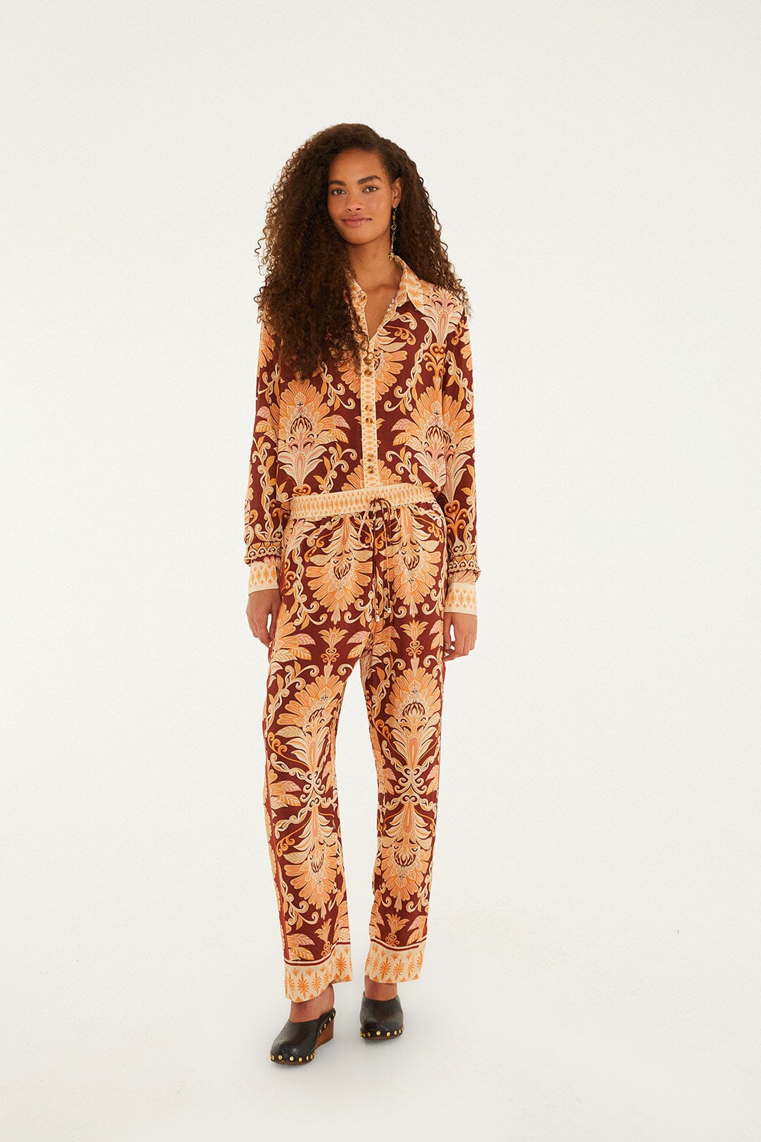 Step into vibrant energy with the Red Wonderful Tapestry Pants by FARM Rio. Crafted in rich reds and intricate tapestry-inspired patterns, these pants celebrate boldness through a relaxed silhouette that moves effortlessly with you. The detailed weaving captures a playful fusion of tradition and modernity, making each step a statement of warmth and character. Perfect for those who love to wear art and culture woven into every thread.