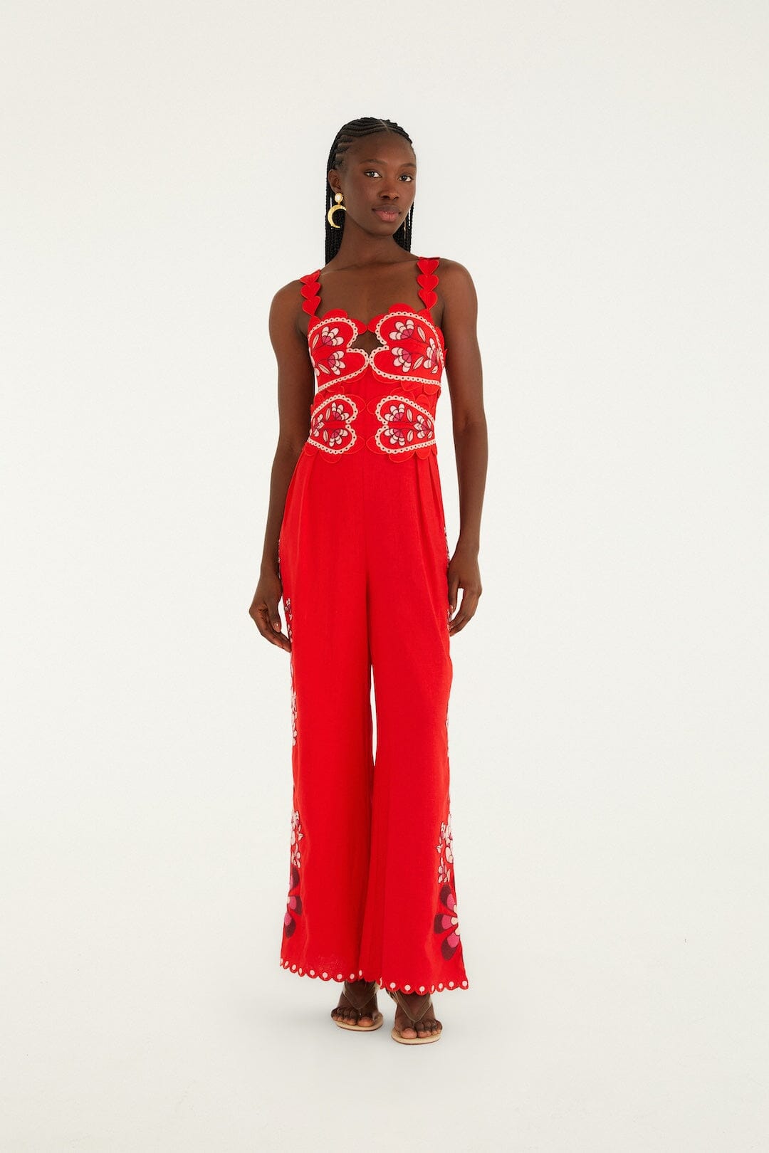 Radiate effortless joy in the Pink Lovely Pineapples Embroidered Jumpsuit by FARM Rio. Crafted from eco-friendly Euroflax and Lenzing, its soft fabric embraces you with breathable comfort. The playful pineapple embroidery dances across a vibrant pink canvas, while the flattering sweetheart neckline adds a touch of vintage romance. With a relaxed yet sculpted silhouette, this jumpsuit invites easy movement and endless sunny adventures with a hint of tropical charm.