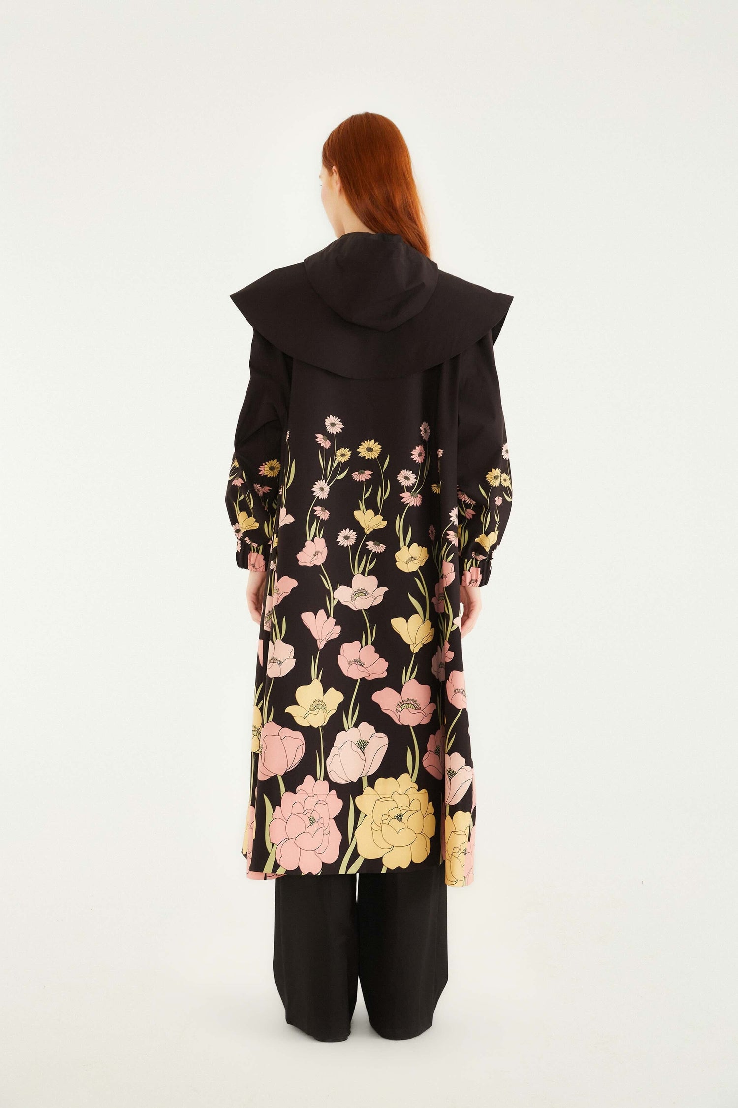 Embrace rainy days with the Black Growing Flowers Raincoat from FARM Rio, where vibrant florals bloom against a sleek black backdrop. The high neckline adds a cozy touch, while the playful pattern breathes life into every shower. Lightweight yet protective, its relaxed silhouette allows effortless movement, blending practicality with joyful charm. This raincoat turns ordinary weather into a celebration of color and comfort, perfect for those who cherish spirited, elegant outerwear.