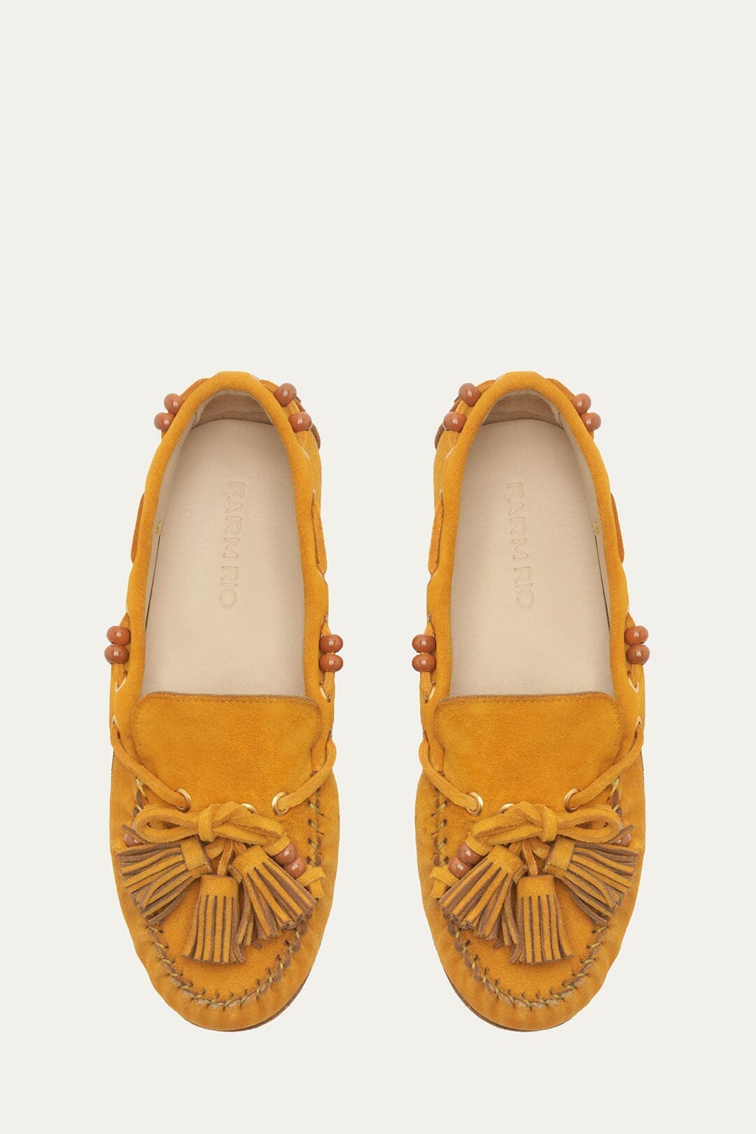 Step into effortless charm with the Brown Tassel Suede Moccasin from FARM Rio. Crafted in soft, rich brown suede, this moccasin features playful tassels that dance with every step, adding a touch of Bohemian ease. The rounded silhouette embraces your foot comfortably, while subtle stitching details bring artisanal warmth to the design. Perfect for those who cherish laid-back elegance infused with a spirited Brazilian soul.