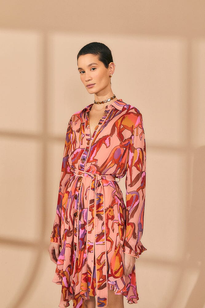 rose wild horses long sleeve mini dress