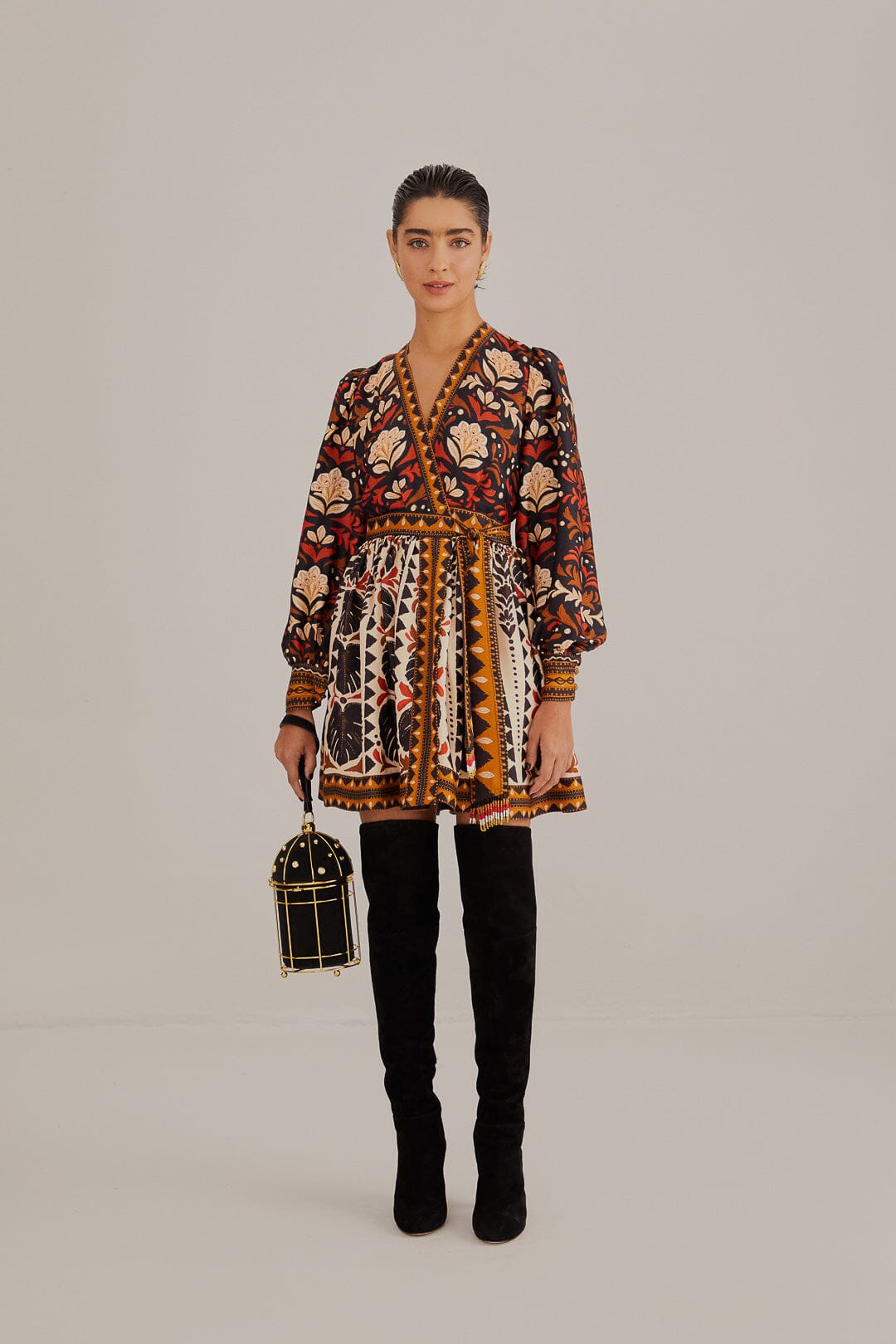 multicolor tapestry garden v neck mini dress