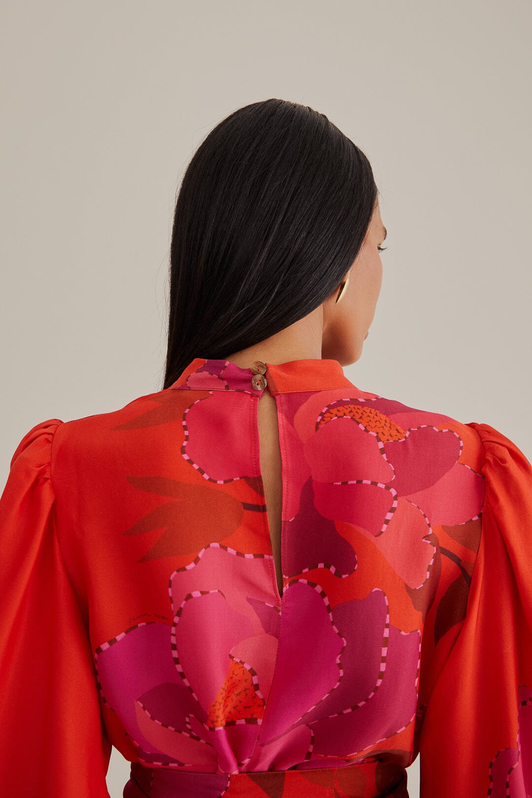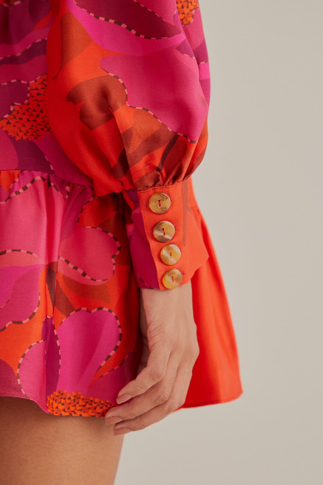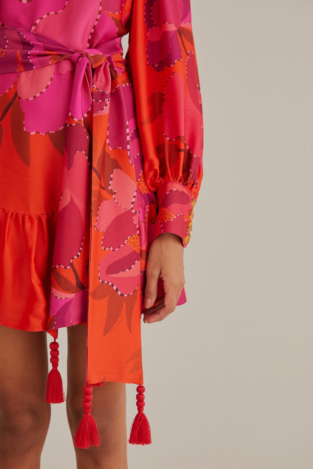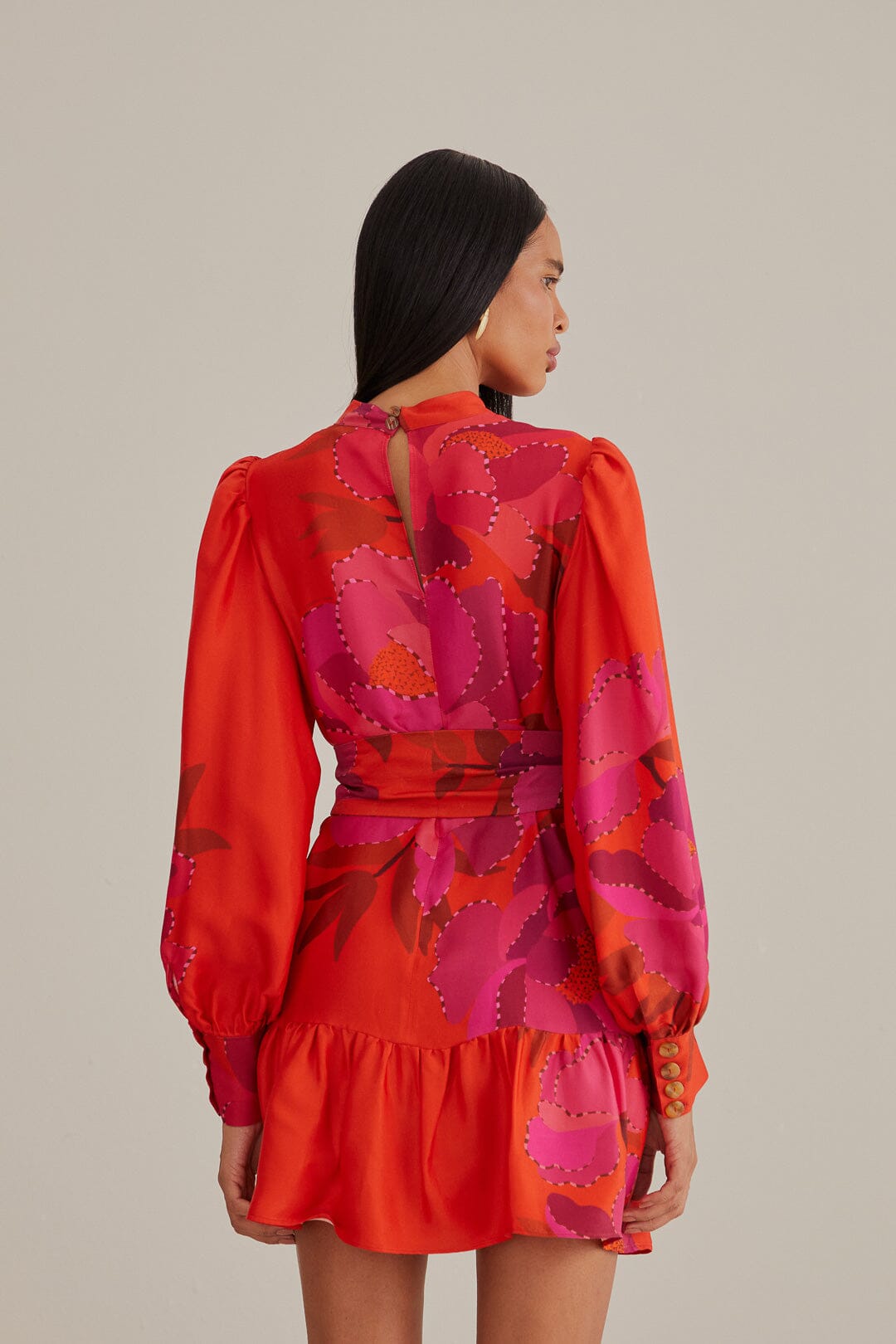 red peony long sleeve mini dress